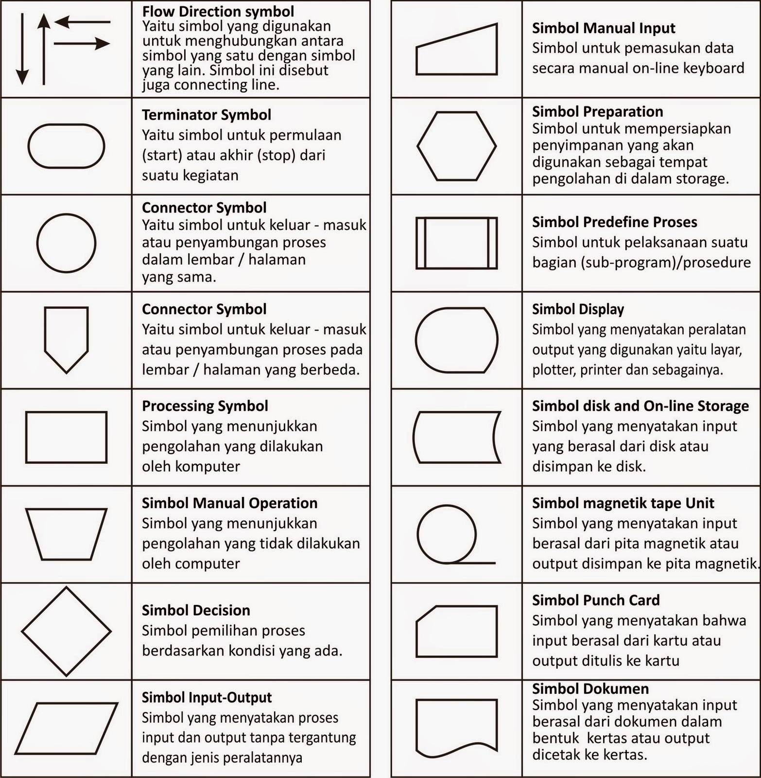 Untuk lebih lanjut, berikut ini Simbol-simbol pada Flowchart